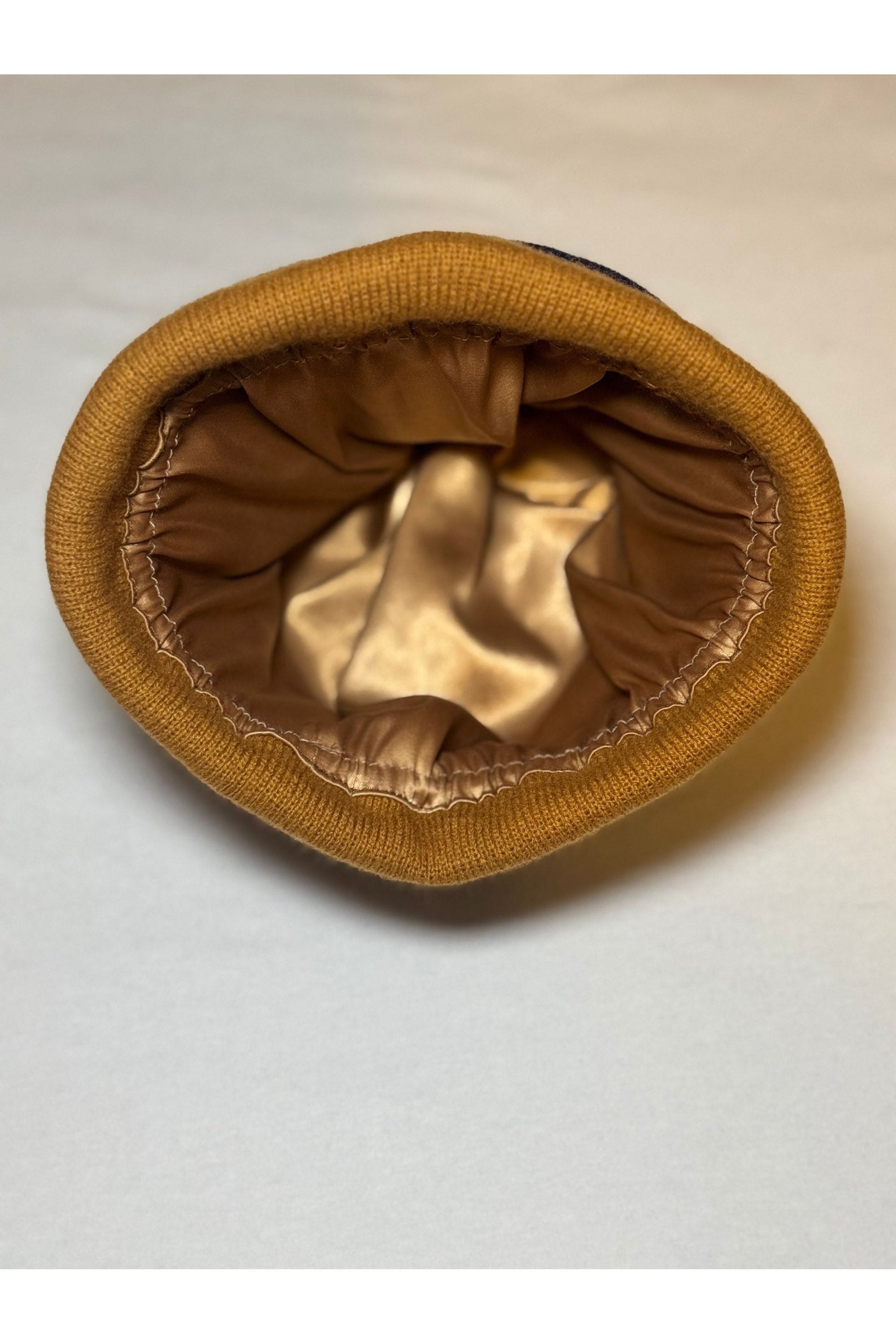 Stacked beanie with a satin interior. Features a embroidered logo on the side and custom woven label. Meant to be styled sideways but embroidery can be styled as the front.
